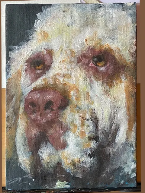 Previous Product Clumber Spaniel Painting £45.00 Quick painting of a Clumber Spaniel named Luther. Acrylic on canvas 5″ x 7″ Clumber Spaniel Painting quantity Add to basket Category: Acrylic Paintings Opens in a new window Tweet This Product Opens in a new window Share on Facebook Opens in a new window Pin This Product Opens in a new window Mail This Product Related products Quick View Quick View Acrylic PaintingsHeracles- APBT Study £45.00 Add to basket